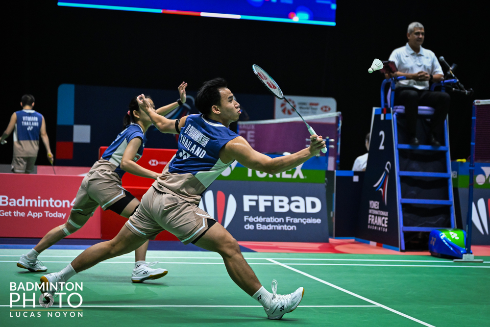 "ไตเติ้ล" รุษฐนภัค อูปทอง กับ "เจน" เฌอย์ณิชา สุดใจประภารัตน์ คู่มืออันดับ 14 ของโลก แพ้ให้กับ ทอม กีเซล กับ เดลฟิน แดร์รูร์ คู่มือวางอันดับ 5 ของรายการ คู่มืออันดับ 6 ของโลกจากฝรั่งเศส ไปอย่างน่าเสียดาย 1-2 เกม 21-19 , 15-21 , 17-21