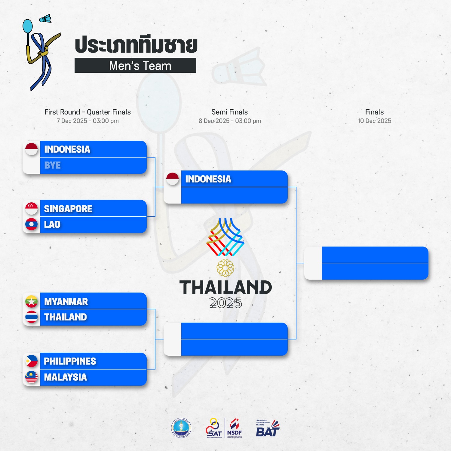เมื่อช่วงสายวันเสาร์ที่ 6 ธันวาคม 2568 ได้มีการจัดพิธีจับสลากแบ่งสายการแข่งขันแบดมินตันประเภททีมเรียบร้อยแล้ว โดยผลปรากฏว่า ทีมไทยมีเส้นทางที่น่าสนใจในการล่าเหรียญรางวัล