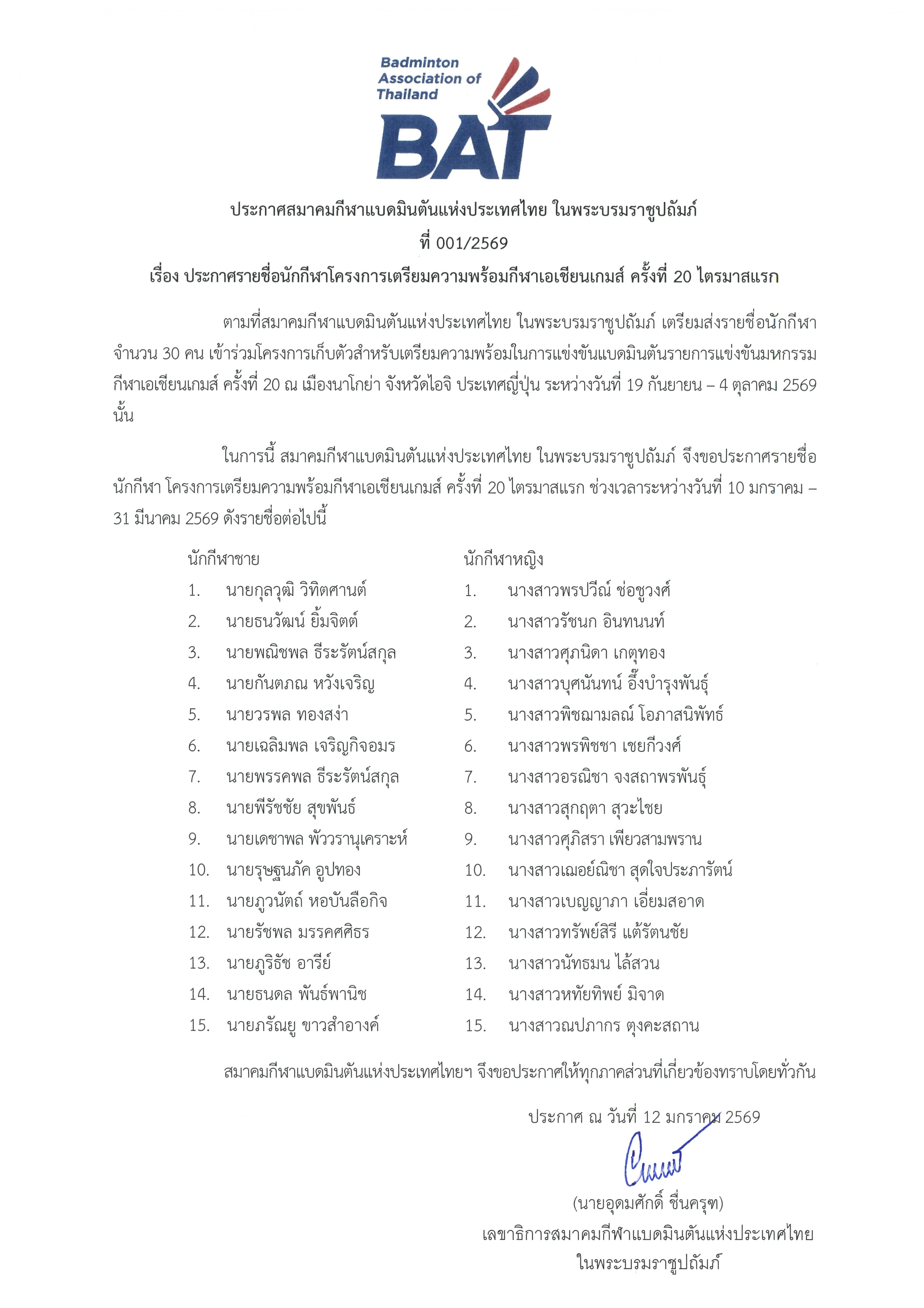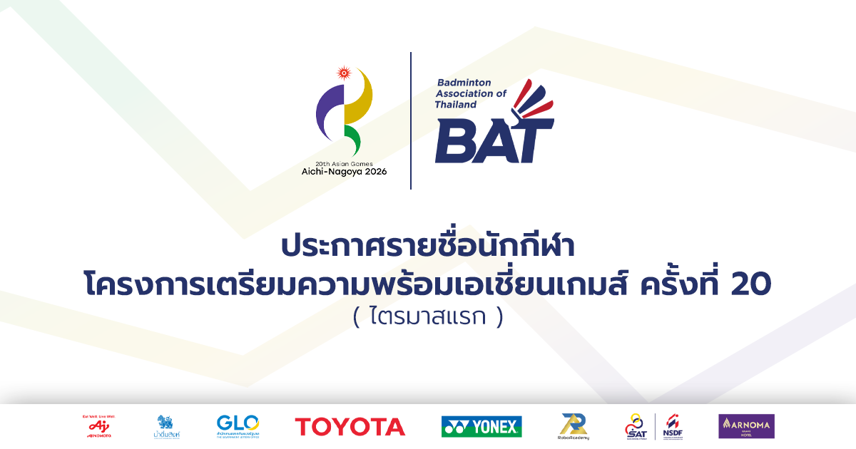 ข่าวสมาคม ประกาศรายชื่อนักกีฬาโครงการเตรียมความพร้อมเอเชี่ยนเกมส์ ครั้งที่ 20 (ไตรมาสแรก) Read More