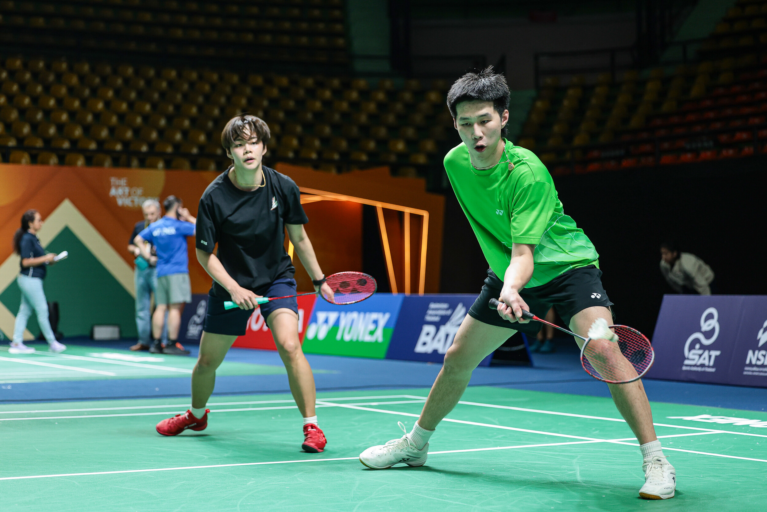 ขณะที่ "โอโม่-พรรคพล" ยอมรับว่าช่วงแรกที่จับคู่กับรุ่นพี่ระดับแชมป์โลกอย่าง "ปอป้อ" มีความตื่นเต้นอยู่บ้าง แต่ปัจจุบันเริ่มปรับตัวและเรียนรู้ระบบการเล่นร่วมกันได้ดีขึ้นเรื่อยๆ