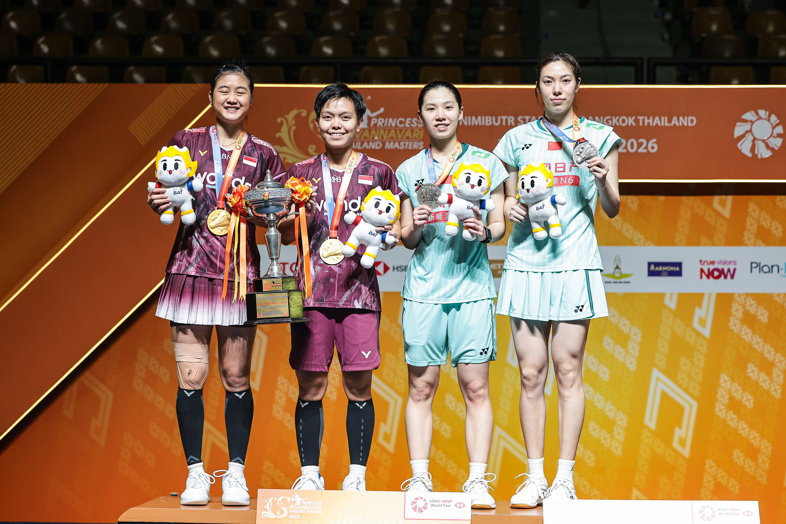 อเมเลีย คาย่า ปราติวี่ กับ ซีติ ฟาเดีย ซิลวา รามัดฮานติ คว้าแชมป์แบดมินตันรายการใหญ่ระดับนานาชาติ ปริ๊นเซส สิริวัณณวรี ไทยแลนด์ มาสเตอร์ส 2026 เวิลด์ทัวร์ ซูเปอร์ 300 ครองถ้วยพระราชทาน สมเด็จพระเจ้าลูกเธอ เจ้าฟ้าสิริวัณณวรี นารีรัตนราชกัญญา พร้อมรับเงินรางวัล 19,750 เหรียญสหรัฐ หรือประมาณ 632,000 บาท ส่วนรองแชมป์ เบา ลี่จิง กับ ลี ยี่จิง รับเงินรางวัล 9,500 เหรียญสหรัฐ หรือประมาณ 304,000 บาท