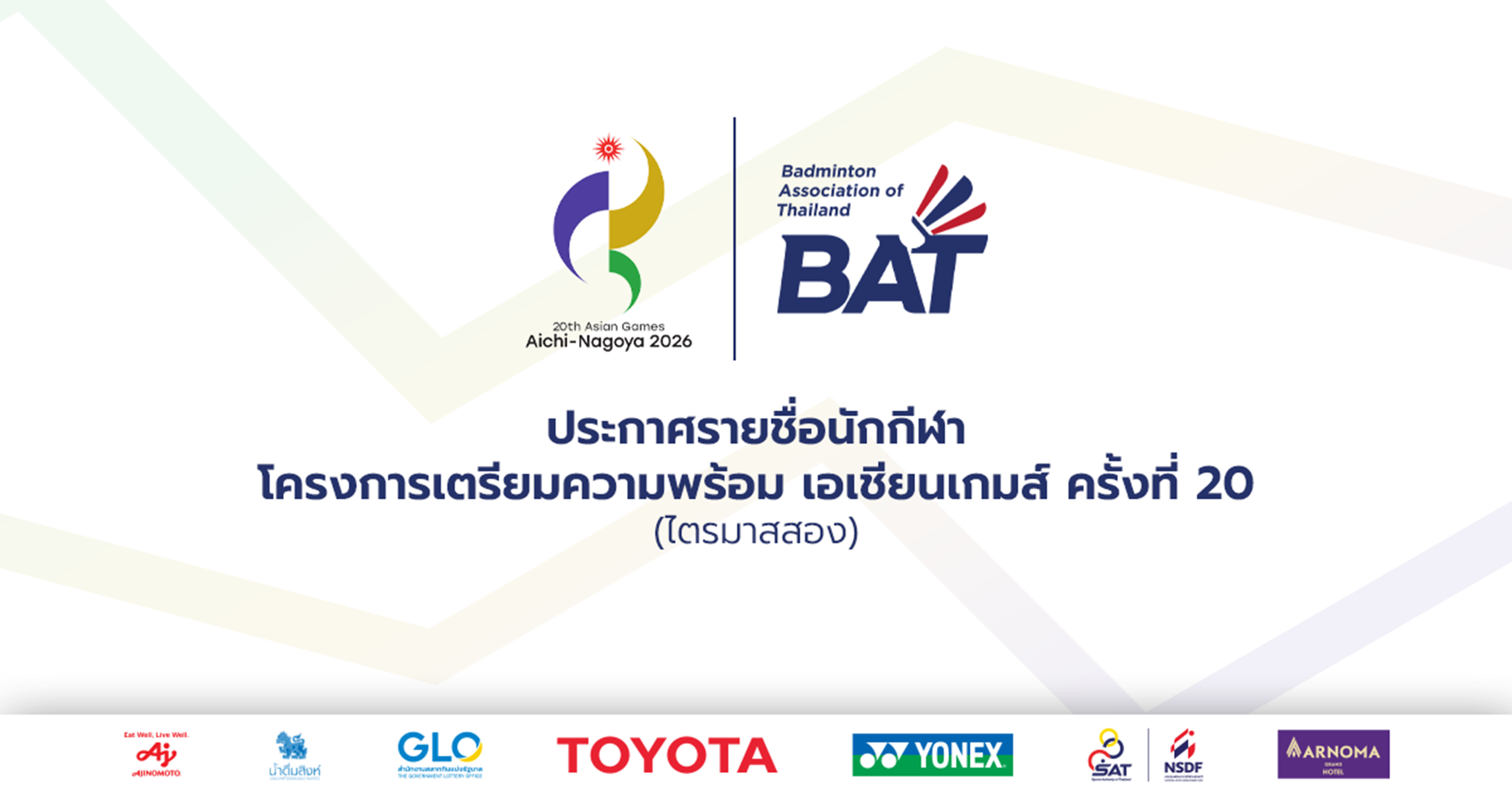 ประกาศรายชื่อนักกีฬา โครงการเตรียมความพร้อม เอเชียนเกมส์ ครั้งที่ 20 (ไตรมาสสอง)