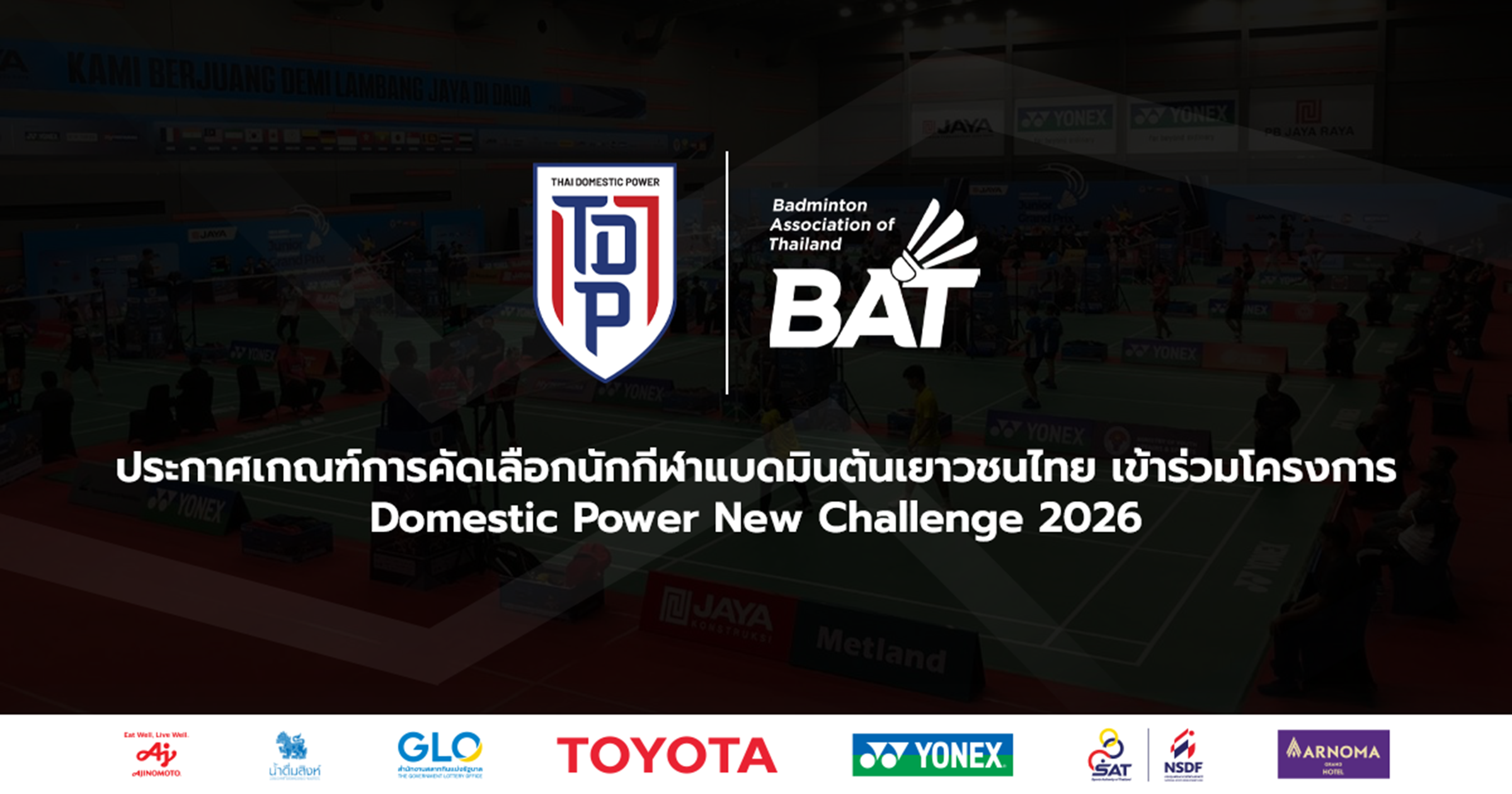 ประกาศเกณฑ์การคัดเลือกนักกีฬาแบดมินตันเยาวชนไทย เข้าร่วมโครงการ Domestic Power New Challenge 2026
