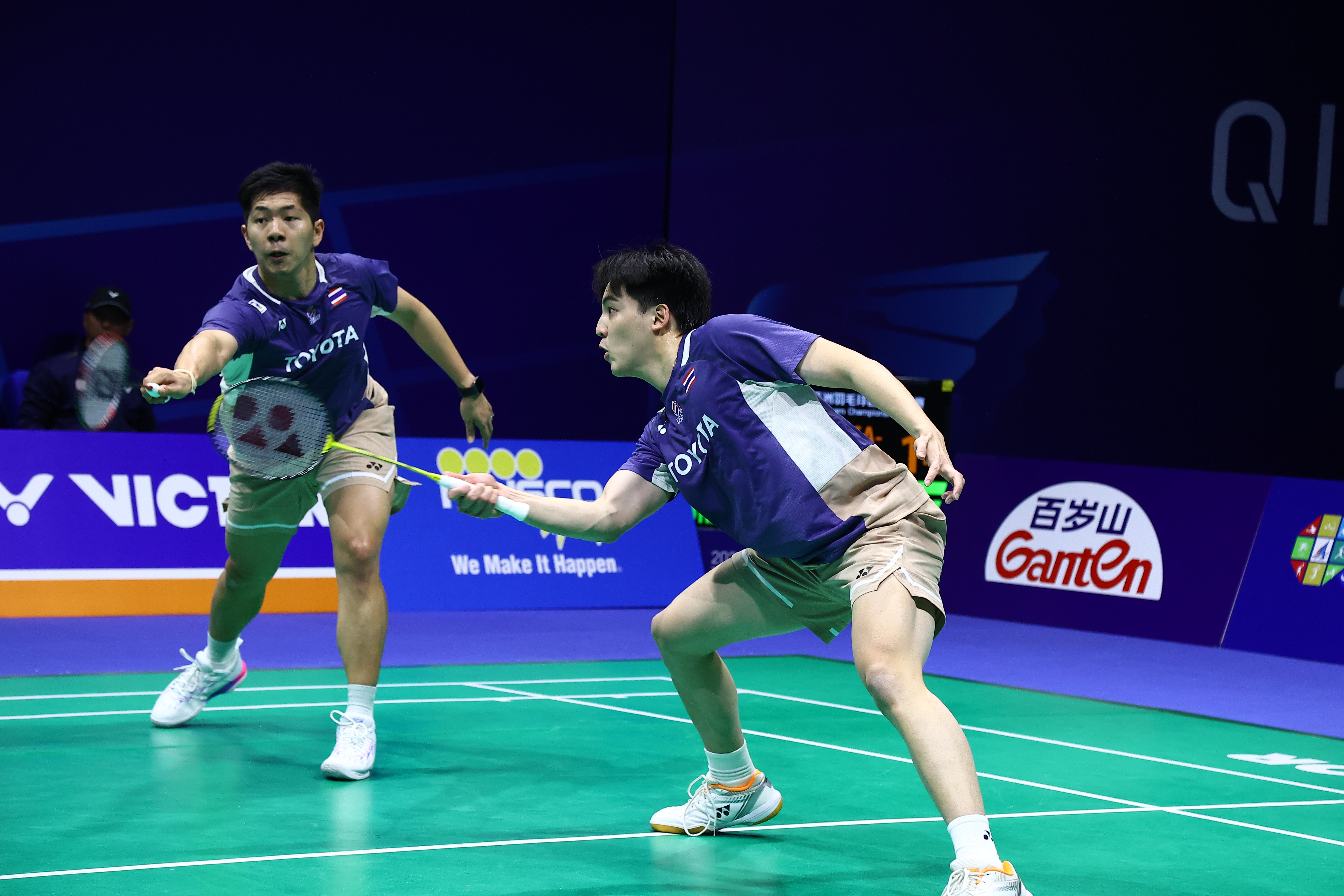 คู่ที่สอง ประเภทชายคู่ มือ 1 "พี" พีรัชชัย สุขพันธ์ กับ “โอโม่” พรรคพล ธีระรัตน์สกุล คู่มืออันดับ 58 ของโลก โชว์ฟอร์มได้อย่างสุดยอด พลิกสถานการณ์แซงกลับมาเอาชนะ ลีโอ โรลลี่ คานานโด้ กับ บาร์กัส มัวลาน่า คู่มืออันดับ 16 ของโลก ไปแบบสนุก 2-1 เกม 14-21 , 21-15 และ 21-17 ทีมไทย ตามตีเสมอเป็น 1-1 คู่