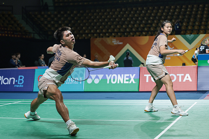 ประเภทคู่ผสม รอบสอง "เอ็ม" สุภัค จอมเกาะ กับ “มุก” อรณิชา จงสถาพรพันธุ์ คู่มืออันดับ 77 ของโลก พบกับ จิมมี่ หว่อง กับ ไล่ เป่ยจิง คู่มืออันดับ 24 ของโลกจากมาเลเซีย