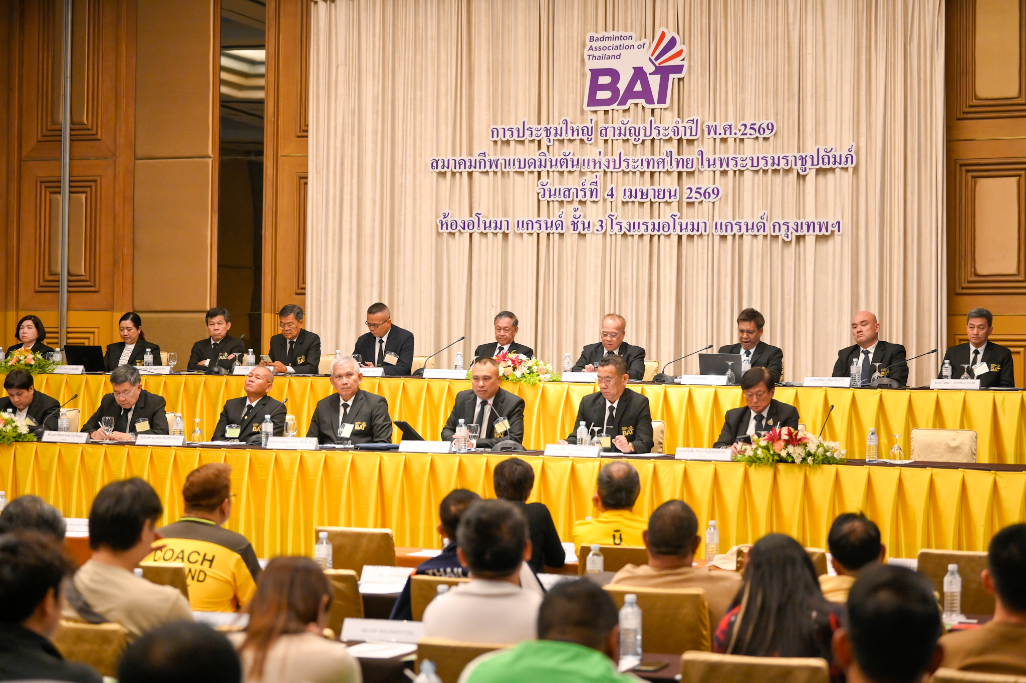 เมื่อช่วงบ่ายวันเสาร์ที่ 4 เม.ย.69 ที่ผ่านมา พลอากาศเอก มณฑล สัชฌุกร นายกสมาคมกีฬาแบดมินตันแห่งประเทศไทย เป็นประธานในการประชุมใหญ่สามัญประจำปี 2569 สมาคมกีฬาแบดมินตันแห่งประเทศไทย ในพระบรมราชูปถัมภ์ โดยมีสโมสรสมาชิกสามัญ 58 สโมสร จากทั้งหมด 85 สโมสร เข้าร่วมประชุมกันอย่างพร้อมเพรียง ที่ ที่ห้องอโนมาแกรนด์ ชั้น 3 โรงแรมอโนมาแกรนด์ กรุงเทพ พร้อมผู้แทนจากการกีฬาแห่งประเทศไทย นายจามร จามรี ตำแหน่งนิติกร 5 กองทะเบียนสมาคมกีฬา สำนักกฏหมาย ร่วมสังเกตการณ์