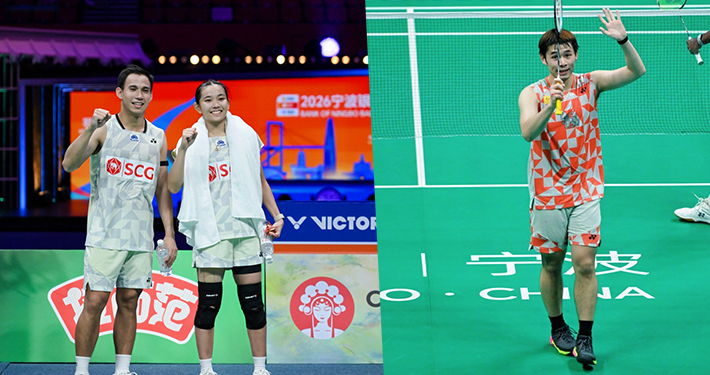 สุดระทึก! "บาส" เดชาพล จับคู่ "เฟม" ศุภิสรา โชว์ฟอร์มสะท้านเมืองหนิงโป เบียดเอาชนะคู่มือ 1 โลกจากจีนไปแบบบีบหัวใจ 2-1 เกม ตีตั๋วเข้าชิงชนะเลิศประเภทคู่ผสมได้สำเร็จ ขณะที่ "วิว" กุลวุฒิ ต้านความแกร่งหนุ่มอินเดียไม่ไหว พ่ายหวุดหวิด 1-2 เกม คว้าเหรียญทองแดงในศึกชิงแชมป์เอเชียไปครอง