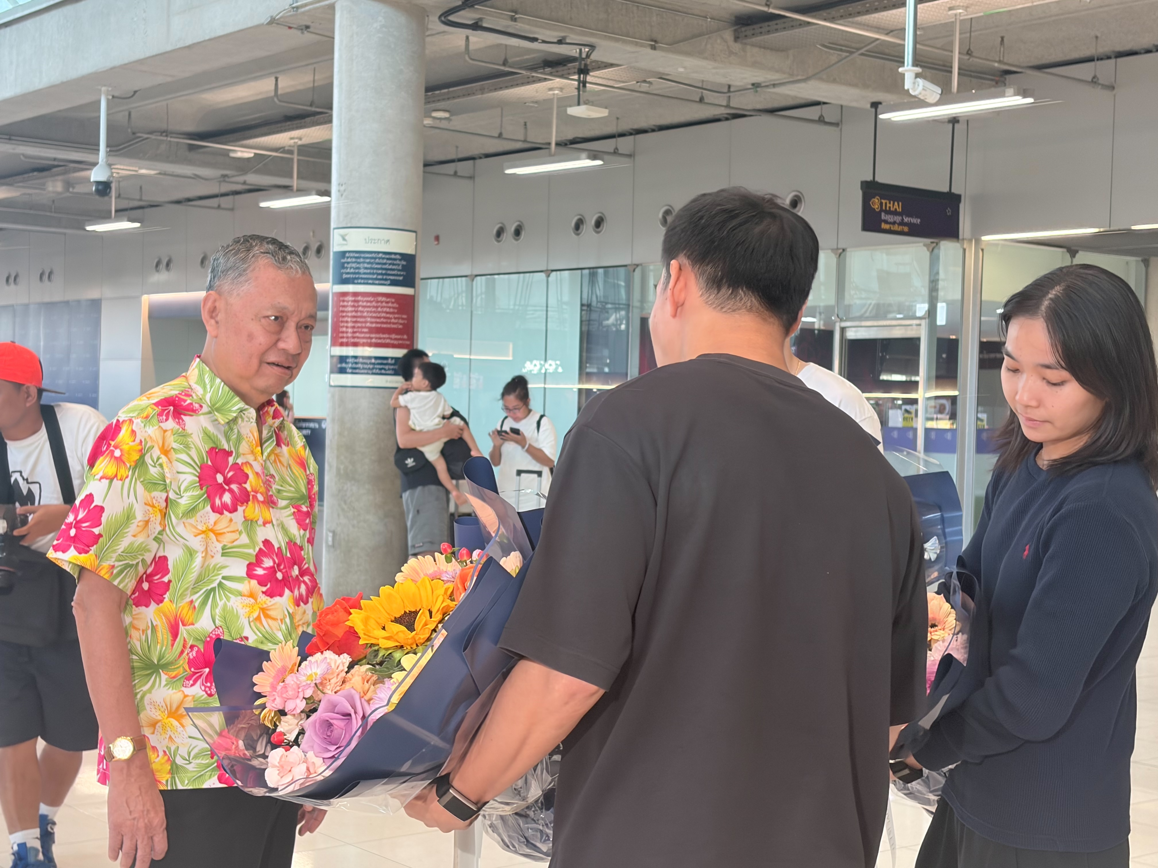 ช่วงบ่ายวันจันทร์ที่ 13 เม.ย.69. ที่ผ่านมา ทัพนักแบดมินตันไทยทำผลงานได้อย่างยอดเยี่ยมในรายการ แบดมินตัน เอเชีย แชมเปี้ยนชิพ 2026 หรือศึกชิงแชมป์เอเชีย ที่เมืองหนิงโป สาธารณรัฐประชาชนจีน คว้ามาได้ 1 เหรียญเงินจากประเภทคู่ผสม "บาส"เดชาพล พัววรานุเคราะห์ กับ "เฟม" ศุภิสรา เพียวสามพราน และ 1 เหรียญทองแดงจาก "วิว" กุลวุฒิ วิทิตศานต์ แชมป์เก่าเมื่อปีที่แล้ว ได้เดินทางกลับถึงประเทศไทยด้วยสายการบินสปริง แอร์ไลน์เที่ยวบิน 9C7431 โดยพลอากาศเอก มณฑล สัชฌุกร นายกสมาคมกีฬาแบดมินตันแห่งประเทศไทยฯ เดินทางให้การต้อนรับมอบช่อดอกไม้แสดงความยินดี ที่ท่าอากาศยานสุวรรณภูมิ